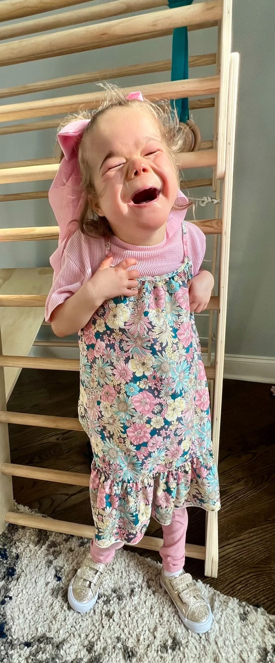 Everlee is the youngest of 11 and everyone’s favorite person! She loves music, laughter, swinging, and dancing. Her favorite activities include being tossed in the air for that feeling of flying, dancing while daddy plays the guitar, and making noises with toys in her hands. She loves watching Cocomelon and spending time with family! She brings a smile to everyone who encounters her! She’s the happiest girl around!